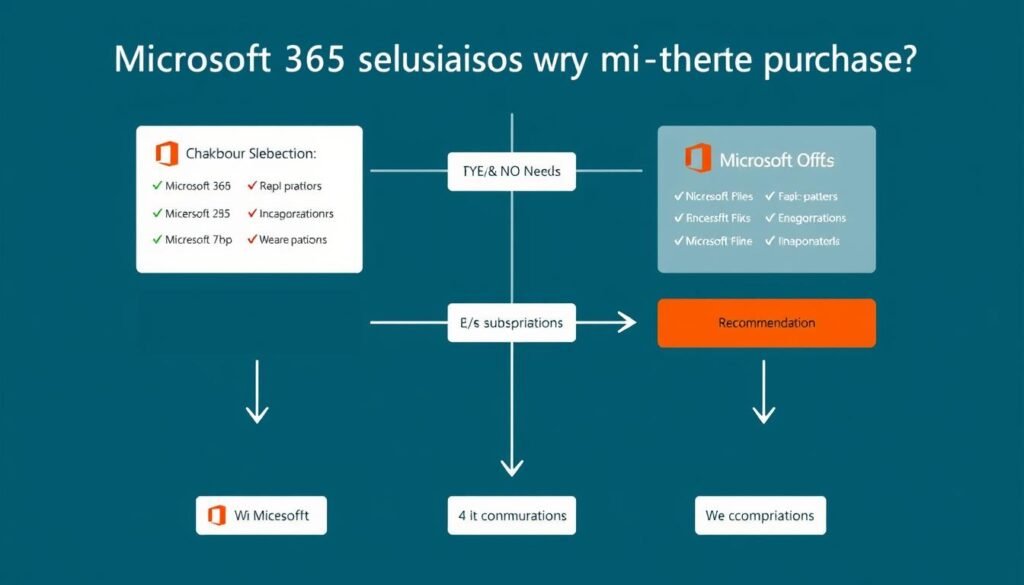 Decision flowchart for choosing between Microsoft 365 subscription and one-time purchase of Word and Excel
